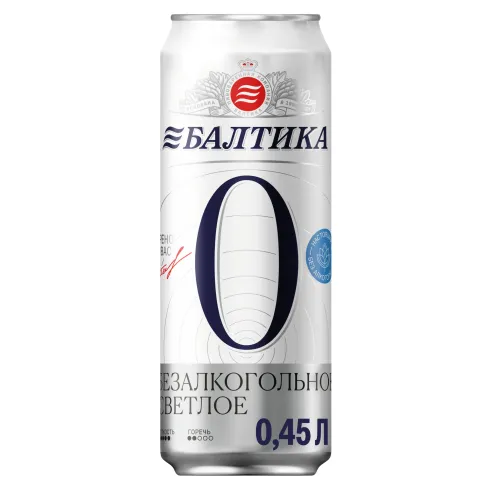 «Балтика №0» - это классический светлый лагер с насыщенным и освежающим солодово-хмелевым вкусом, подробнее«Балтика №0» - это классический светлый лагер с насыщенным и освежающим солодово-хмелевым вкусом, только без алкоголя. Для варки Балтики 0 используются особые дрожжи, которые позволяют повторить технологию варки обычного пива. «Балтика №0» содержит минералы и витамины В, А и Е, которые помогают восстановиться после физической и умственной активности. 100% солод. Содержит всего 30 ккал на 100 г.