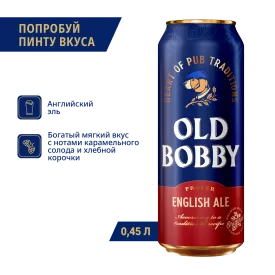 Пивной напиток Old Bobby Ale светлый нефильтрованный 0,45 л