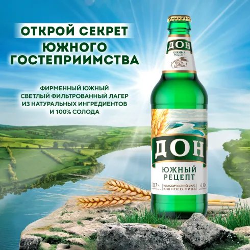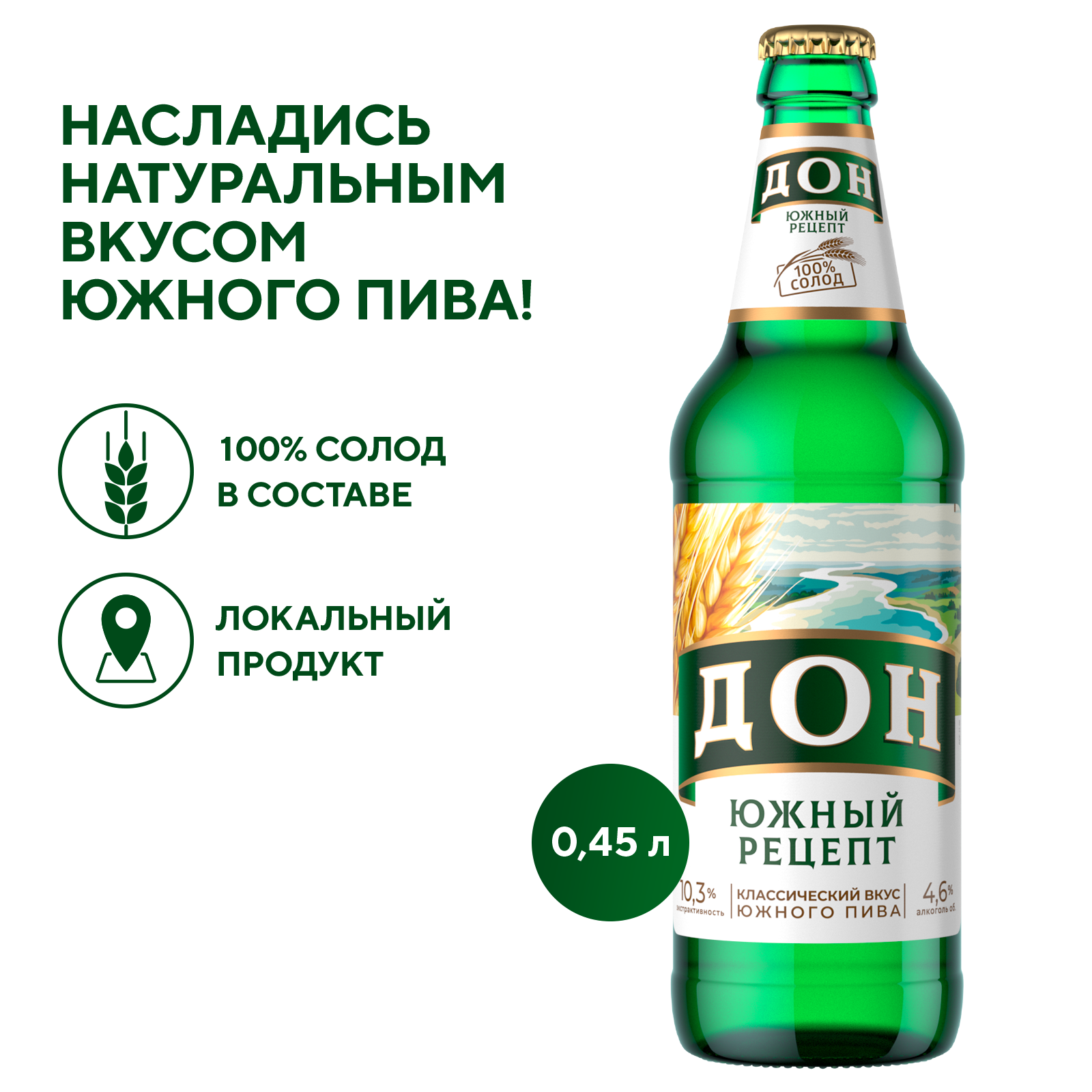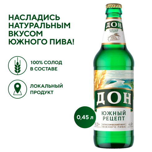 Дон Южный Рецепт — это пиво, подробнее"Дон Южный Рецепт Бутылка 0,45 – вкус южного солнца в каждой бутылке!