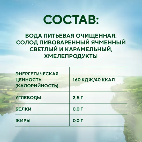вода питьевая очищенная, солод пивоваренный ячменный светлый и карамельный, хмелепродукты.