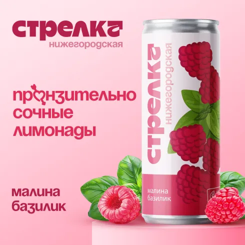 "Нижегородская Стрелка «Малина - базилик» Банка 0,33 – освежающий вкус с ярким характером!