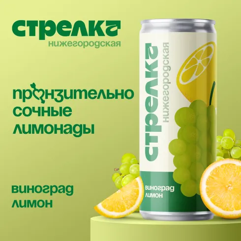 "Нижегородская Стрелка «Виноград - лимон» Банка 0,33 – идеальный лимонад для ценителей свежести!