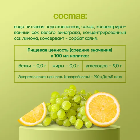 вода питьевая подготовленная, сахар, концентрированный сок белого винограда, концентрированный сок лимона