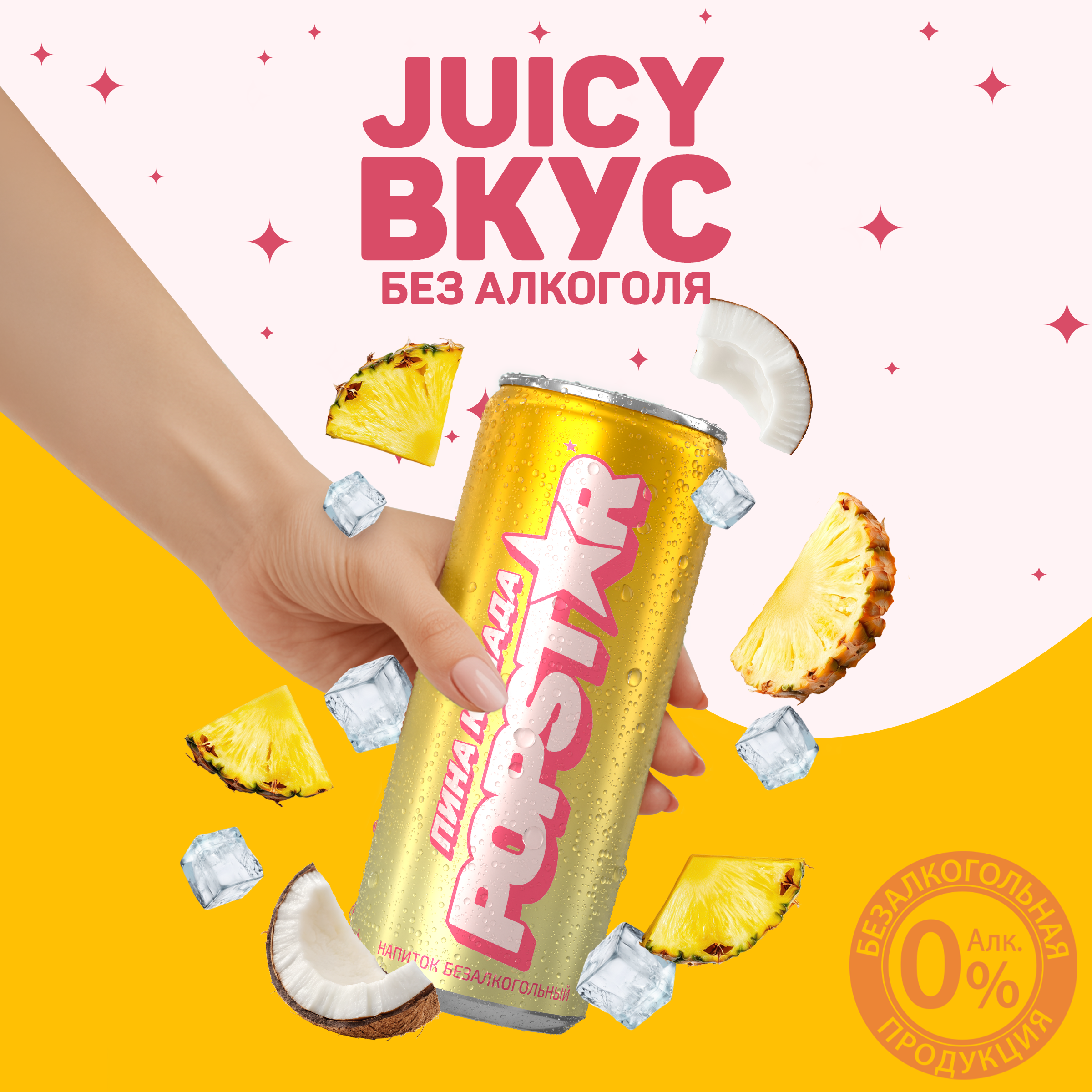 вода питьевая очищенная, сахар, регуляторы кислотности: лимонная кислота, аскорбиновая кислота, ароматизатор пищевой «Тип Ананас» (стабилизаторы: E414, Е445, краситель бета-каротин (Е160а)), комплексная пищевая добавка «Смесь подсластителей Мультисвит» (подсластители: Е952, Е955, Е954), консерванты: сорбат калия, бензоат натрия, ароматизатор пищевой «Тип Кокос», ароматизатор пищевой «Тип Ром».