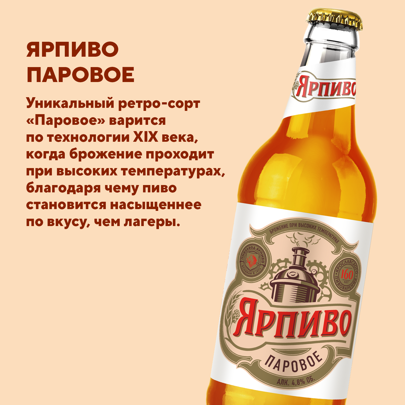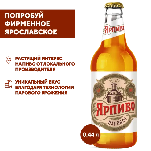Ярпиво Паровое Бутылка 0,44 – классический вкус качественного пива! Светлое пиво с гармоничным подробнееЯрпиво Паровое Бутылка 0,44 – классический вкус качественного пива! Светлое пиво с гармоничным вкусовым профилем, созданное для любителей традиционного пива. Напиток обладает приятным солодовым ароматом и легкой хмелевой горечью.