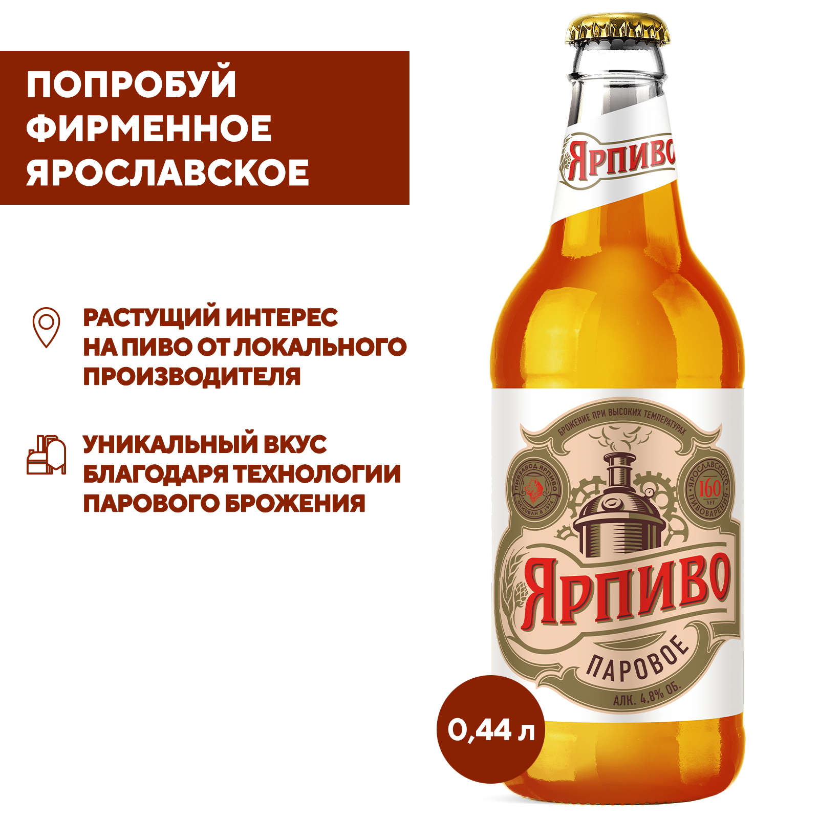 Произведено в соответствии с высочайшими стандартами качества пивоварной компании. Получи Ярпиво Паровое Бутылка 0,44 с самовывозом в фирменном магазине Балтика!